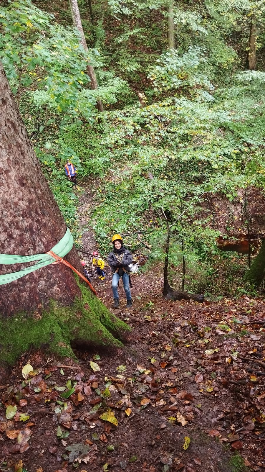 Zum Abschluss wartete eine anspruchsvolle Gruppenaufgabe: Ein „Schatz“ musste aus einem imaginären Säuresee geborgen werden. Die Klasse überlegte gemeinsam, wie mithilfe eines Seils, eines Baums und einer Kletterausrüstung eine sichere Konstruktion entstehen kann, um einen Teammitglied zur „Insel“ zu schicken und den Schatz zu retten – selbstverständlich ohne den Boden zu berühren. Mit viel Kreativität, gegenseitiger Unterstützung und einigen cleveren Ideen gelang es allen Gruppen, die Herausforderung zu meistern.